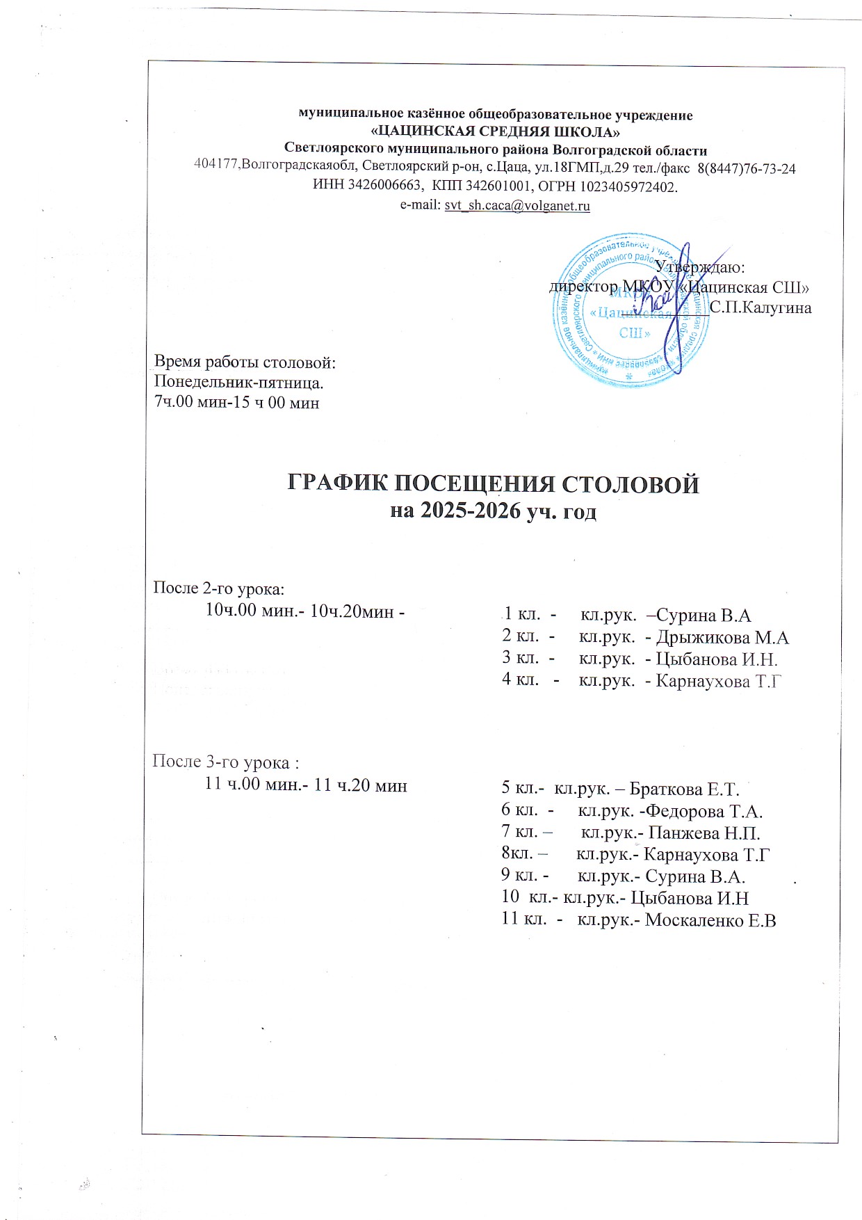 Ответственный за питание в МКОУ "Цацинская СШ" - Фомиченко Любовь Александровна тел.: 8(8447)76-73-24